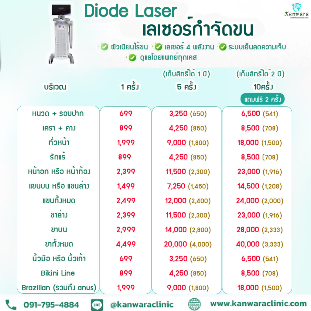 กำจัดขน ด้วย เลเซอร์ขน ไดโอดเลเซอร์ (Diode Laser) ที่คลินิก ใกล้ฉัน ราคา เท่าไหร่ กี่ครั้งเห็นผล