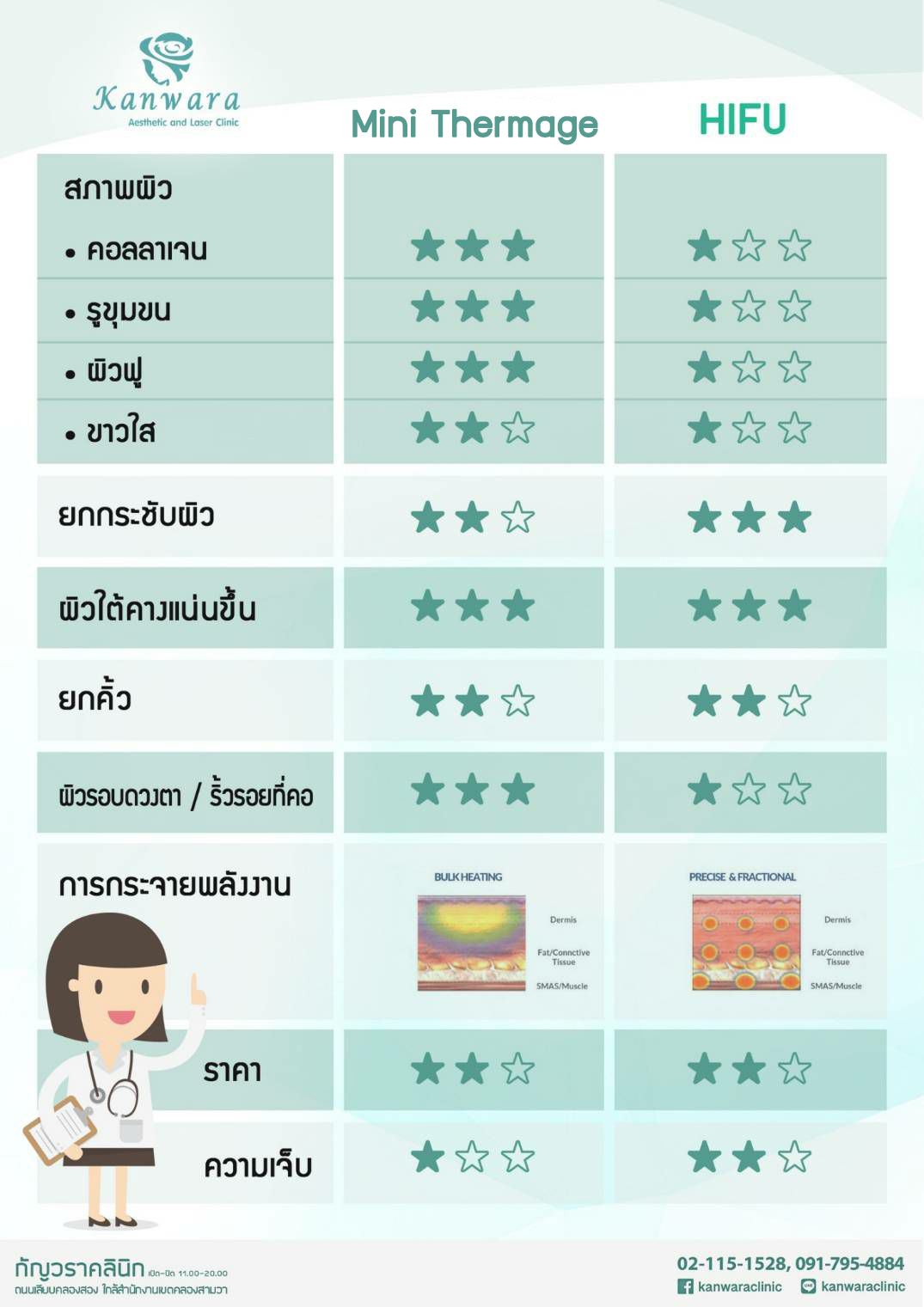 นวัตกรรมกลุ่มยกกระชับหน้ามี 2 ชนิดคือ Hifu และ Mini Thermage ทั้งสองแบบต่างกันยังไง ลองมาดูกันค่ะ